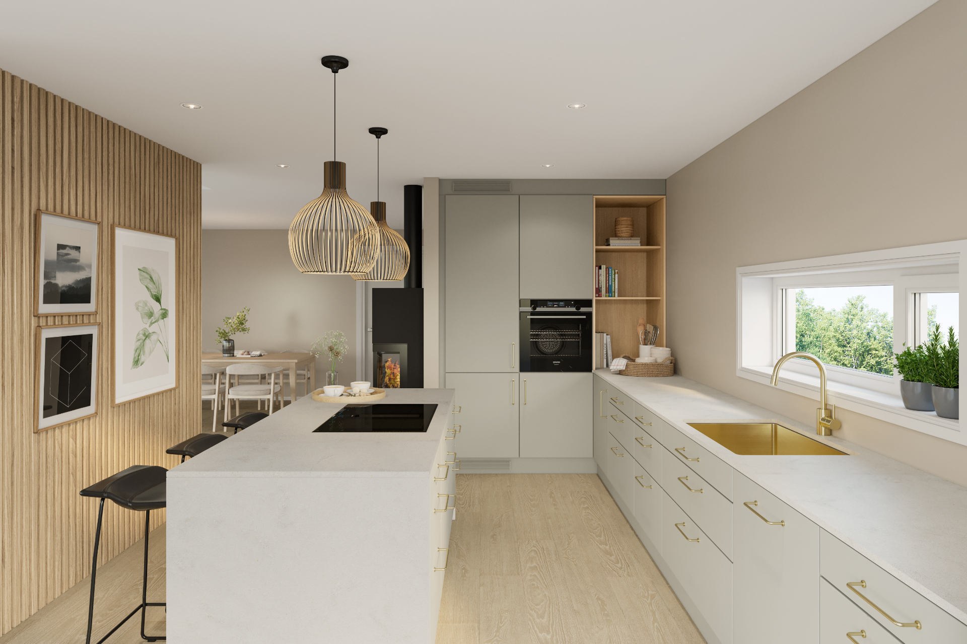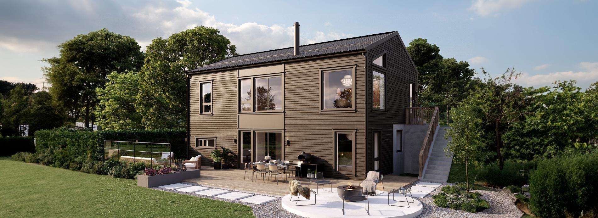 Funkishus med stor stue, Drømmekjøkkenet, Siemens hvitevarer, smarthus og panoramautsikt. 3 soverom + hybel. Inkluderer støpt plate/grunnmur og 1-trinns byggesøknad.