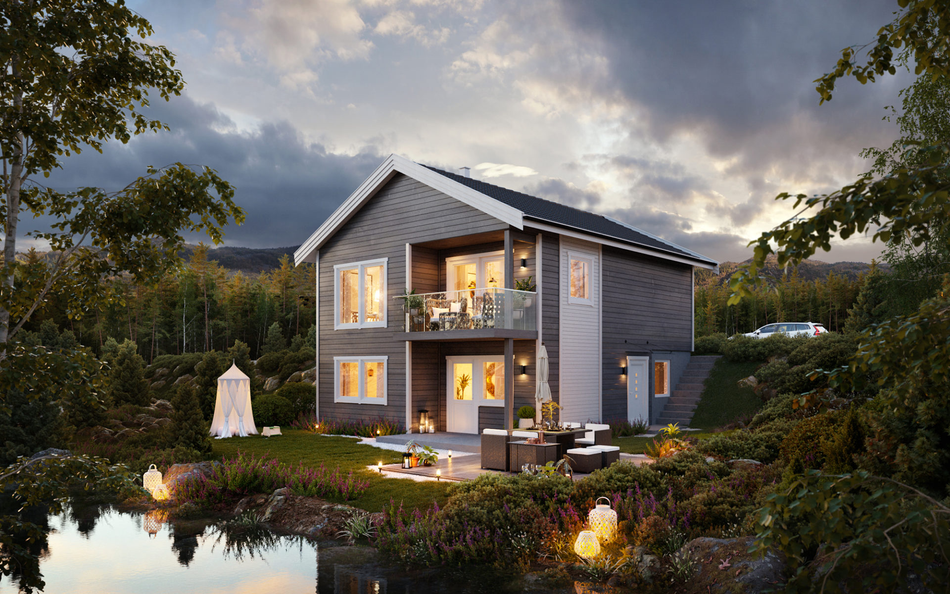 - 2Alle 4 husmodeller er innenfor reguleringsplan